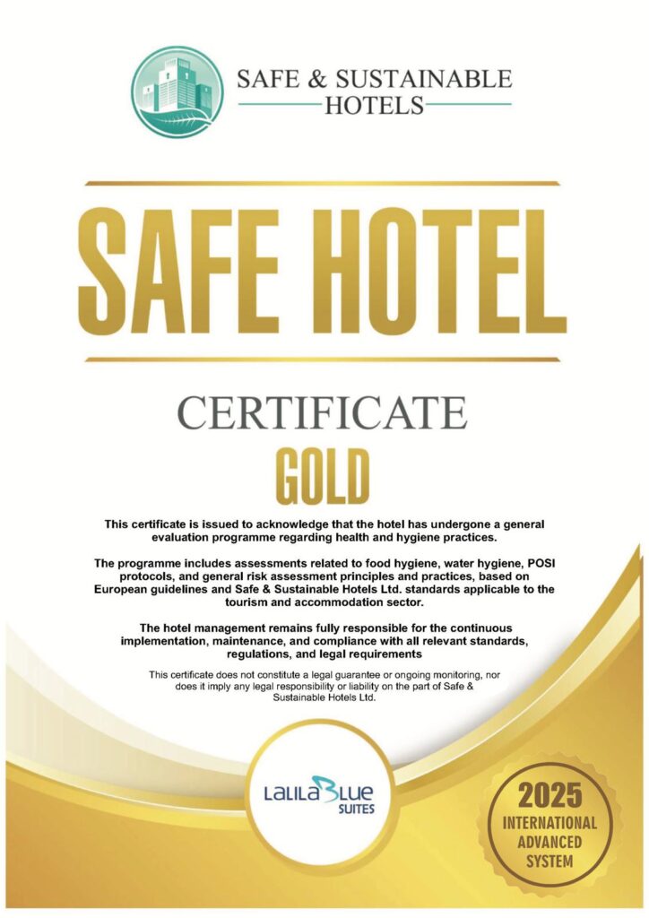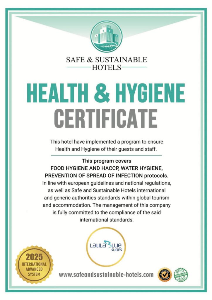 Our hotel undergoes an annual inspection by a certified international auditing firm based in Europe.